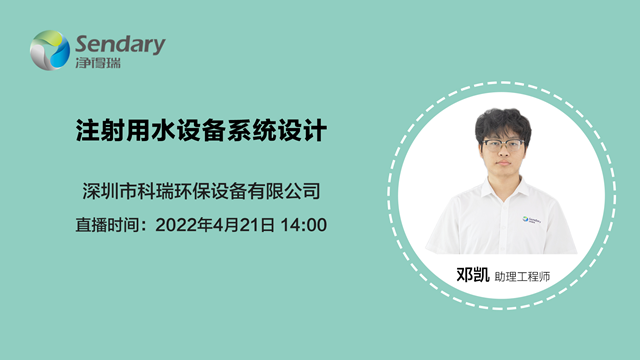 注射用水設(shè)備系統(tǒng)設(shè)計需要考慮哪些因素?如何做好URS分析?注射用水要滿足什么法規(guī)?設(shè)計基礎(chǔ)及系統(tǒng)工藝又有哪些?4月21號下午14:00,凈得瑞將為大家?guī)韺鲋辈ブv座:《注射用水設(shè)備系統(tǒng)設(shè)計》進(jìn)行解惑。圖一 《注射用水設(shè)備系統(tǒng)設(shè)計》點擊圖片進(jìn)入直播間 直播由凈得瑞助理工程師鄧凱在線分享,歡迎大家鎖定...