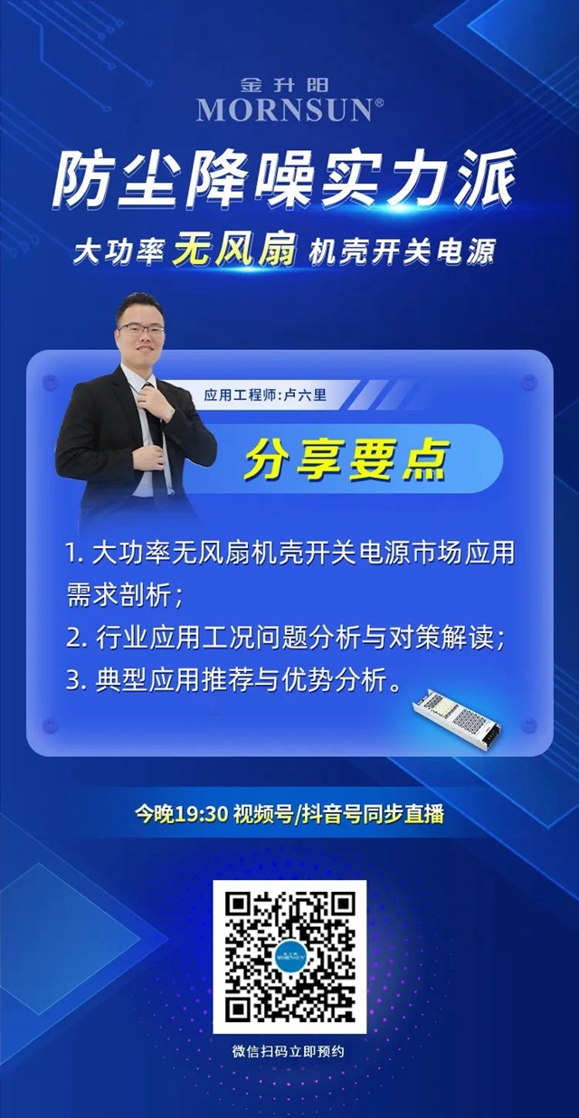 大功率無風(fēng)扇機殼開關(guān)電源——工業(yè)制造不同場景如何選取合適的開關(guān)電源?市場應(yīng)用中關(guān)于防塵降噪會遇到哪些問題?如何設(shè)計滿足防塵降噪需求? 視頻號/抖音號/捷客三大平臺同步放送!今晚七點半,金升陽直播間等你來品! 快快掃碼預(yù)約吧~直播活動預(yù)告福利1——邀約有...