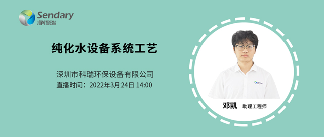 3月24日14:00,由凈得瑞帶來的《純化水設(shè)備系統(tǒng)工藝》即將開播,精彩內(nèi)容盡在直播間,歡迎大家準(zhǔn)時觀看!圖一 【直播預(yù)告】純化水設(shè)備系統(tǒng)工藝(點擊圖片進入直播間) 純化水設(shè)備系統(tǒng)是針對醫(yī)藥企業(yè)的用水特點而設(shè)計,主要用于制劑、配液和沖洗。設(shè)備主要采用反滲透及EDI技術(shù),結(jié)合預(yù)處理裝置配套使用,有效去...