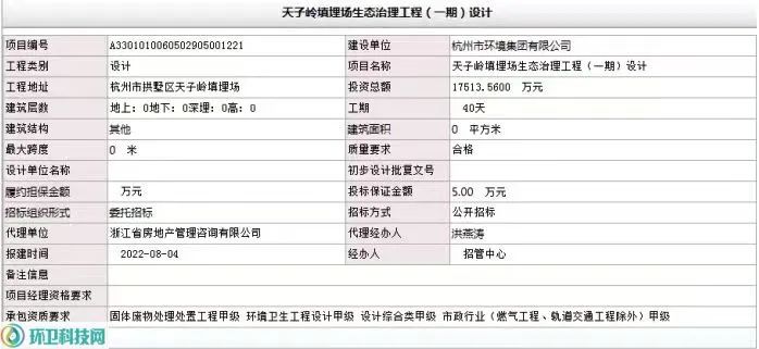 來源 | 環(huán)衛(wèi)科技網(wǎng)作者 | ivy筆者昨日注意到,杭州市人民政府網(wǎng)站8月5日公布了“天子嶺填埋場生態(tài)治理工程(一期)設(shè)計招標(biāo)核準(zhǔn)登記”,這意味著坊間流傳已久的杭州天子嶺生活垃圾填埋場生態(tài)治理工程即將進入實操階段。從這份核準(zhǔn)登記文件看,天子嶺填埋場生態(tài)治理工程建設(shè)單位為杭州市環(huán)境集團有限公司,投資總...