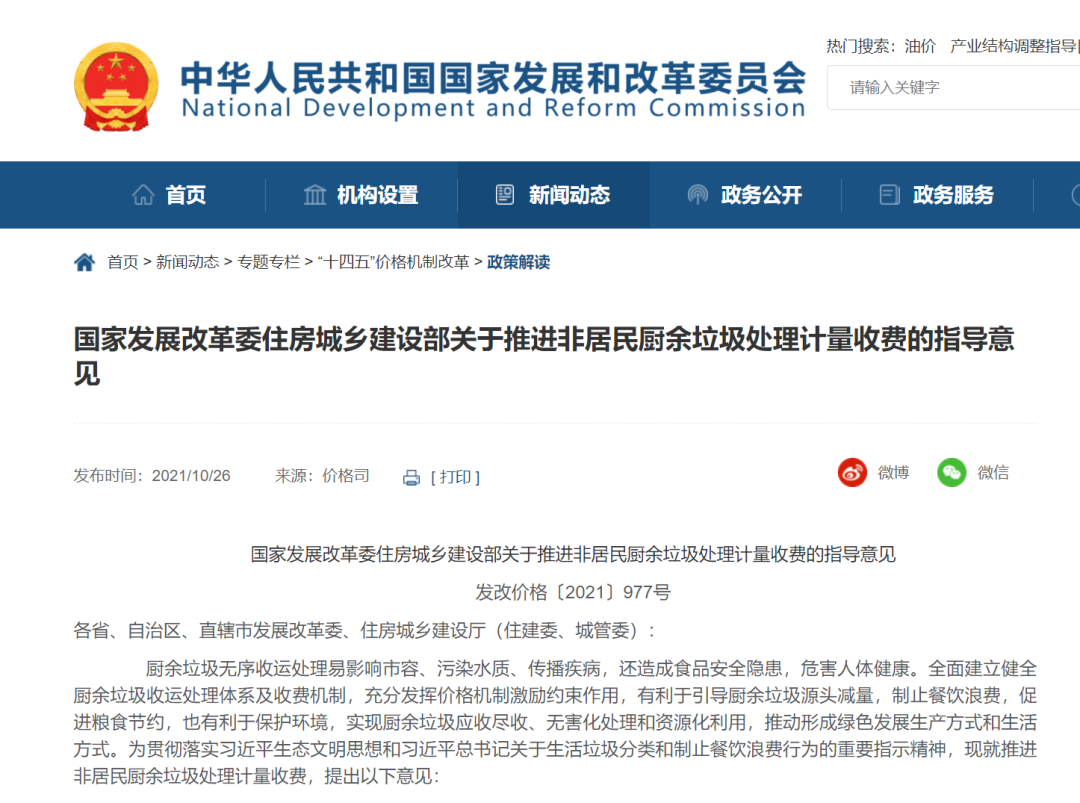 目前,北京、廣東、甘肅、陜西、山西、新疆、江西、福建、浙江、河北等多地已先后出臺政策,按照“產生者付費”原則,建立健全計量收費機制,推進非居民生活垃圾計量收費工作開展。河北省2022年7月14日,河北省發(fā)展和改革委員會會同河北省住房和城鄉(xiāng)建設廳印發(fā)《關于建立非居民廚余垃圾處理計量收費機制的實施意見(...
