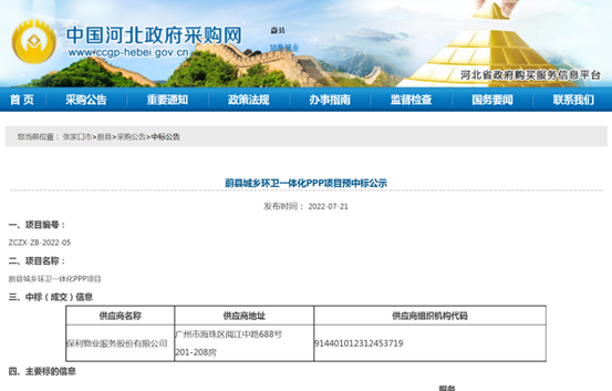 蔚縣項目是保利物業(yè)即將收獲的首個環(huán)衛(wèi)PPP項目,也是該公司首次問鼎10億+環(huán)衛(wèi)運營類政府采購大單。公告顯示,蔚縣城鄉(xiāng)環(huán)衛(wèi)一體化PPP項目采購預算159250.96萬元,預成交價58084233.75元/年(初始年服務費),合作期限24年2個月,合作內容包括蔚縣城區(qū)及鄉(xiāng)鎮(zhèn)道路清掃保潔、灑水降塵、垃圾收...