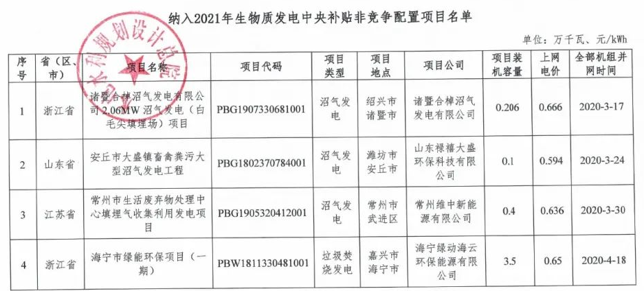 詳情如下:根據《國家發(fā)展改革委 財政部 國家能源局關于印發(fā)〈2021年生物質發(fā)電項目建設工作方案〉的通知》(發(fā)改能源〔2021〕1190號)、《國家可再生能源信息管理中心關于反饋納入2021年生物質發(fā)電中央補貼非競爭配置項目名單的函》(再生能信息函〔2022〕4號)、《國家可再生能源信息管理中心關于...