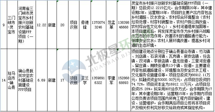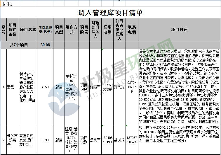 根據(jù)《河南省財政廳PPP項目庫入庫指南》調(diào)整項目庫的工作安排及最新政策動向,我中心對截止8月底市縣申報進(jìn)入管理庫及儲備清單的項目進(jìn)行了審查,現(xiàn)將本次調(diào)整結(jié)果予以公告。其中:調(diào)入項目管理庫項目7個,總投資30億元;調(diào)入項目儲備清單項目18個,總投資448億元。