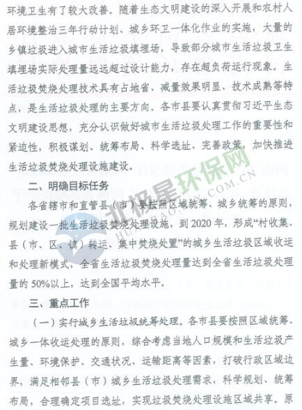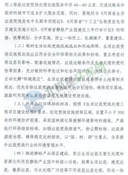 日前,河南省發(fā)布關于于進一步加快生活垃圾焚燒處理設施建設的意見,到2020年,全省生活垃圾焚燒處理要達到全省生活垃圾量的50%以上。詳情如下: