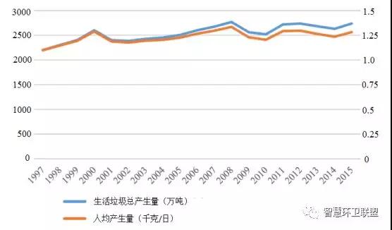 圖2. 芬蘭生活垃圾產生量及人均產生量的變化趨勢
