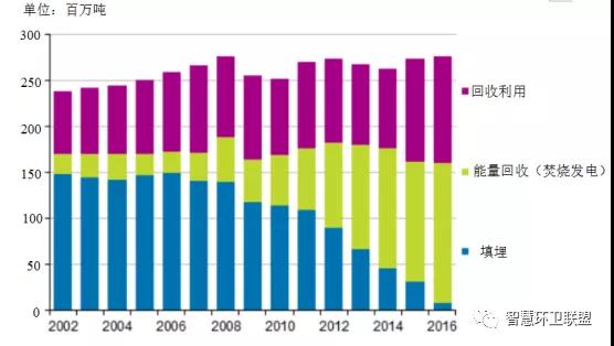 圖10.2002~2016年間芬蘭的廢物處置方式變化情況