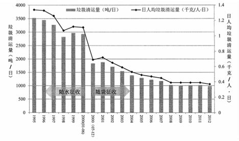 圖 1 臺北市垃圾費隨袋征收前后垃圾清運量及日人均垃圾清運量變化圖(資料來源:臺北市政府環(huán)境保護局)
