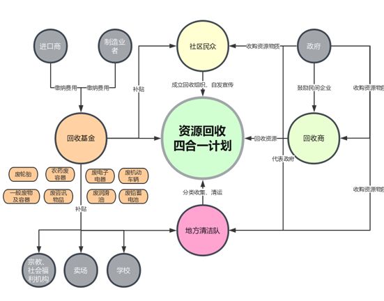 回收基金:督導責任業(yè)者繳交回收清除處理費,成立基金;運用獎助及補貼機制,推進資源回收處理體系建設;建立有效回收制度,暢通回收處理管道。