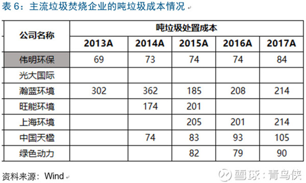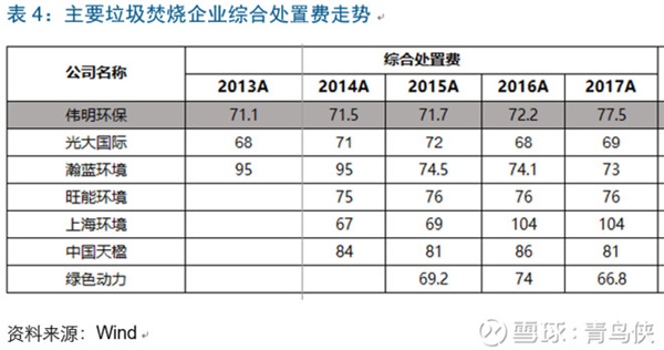 偉明環(huán)保的綜合垃圾處置單價約77.5元/噸,排在行業(yè)中等,最高的是上海環(huán)境,高達104元/噸