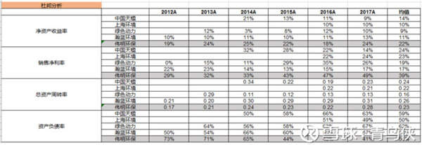 偉明環(huán)保(SH603568)的ROE2012年-2017年均值為22%,遠超焚燒同行,資產(chǎn)負(fù)債率連續(xù)走低,總資產(chǎn)周轉(zhuǎn)率改善明顯,但跟行業(yè)差距不大,主要依靠較高的凈利率&毛利率。