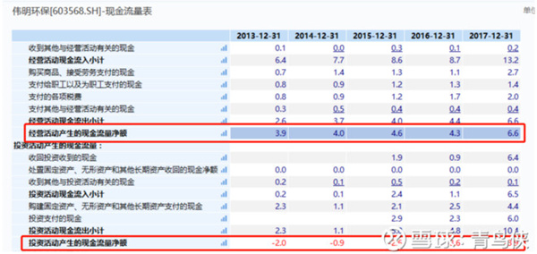 偉明環(huán)保經(jīng)營活動現(xiàn)金流凈額持續(xù)為正,且超過投資活動現(xiàn)金流凈額,期末現(xiàn)金余額持續(xù)增加,可見其期末現(xiàn)金余額主要來之經(jīng)營;