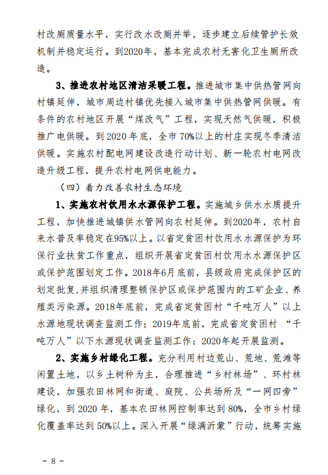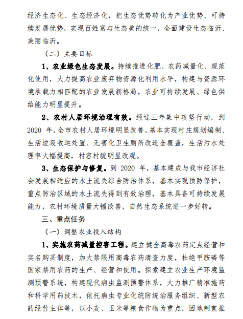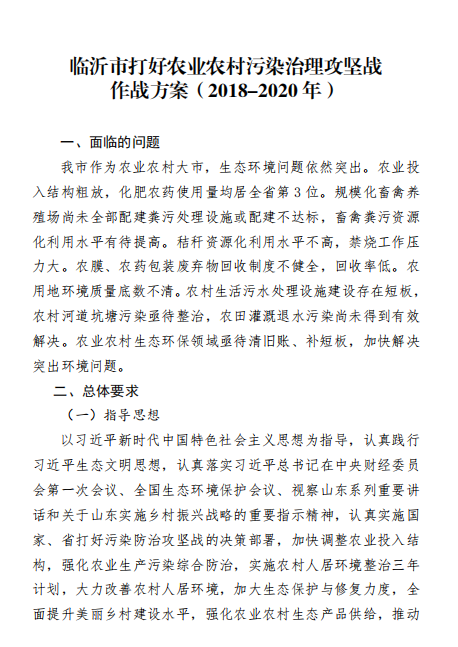 近日,臨沂市人民政府發(fā)布關(guān)于印發(fā)臨沂市打好農(nóng)業(yè)農(nóng)村污染治理攻堅戰(zhàn)作戰(zhàn)方案(2018-2020年)的通知,方案要求,到2020年,全市農(nóng)村人居環(huán)境明顯改善,基本實現(xiàn)村莊規(guī)劃編制、生活垃圾收運處置、無害化衛(wèi)生廁所改造全覆蓋,生活污水處理率大幅提高,村容村貌明顯改觀。詳情如下: