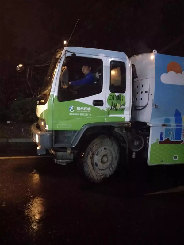 龔磊作業(yè)的線路要收運三車垃圾,為了減少對居民的打擾,第一、第二車線路安排在錢江新城寫字樓作業(yè)。3點半,龔磊、龔縵琴在市民街開始第一個作業(yè)點的垃圾收運。