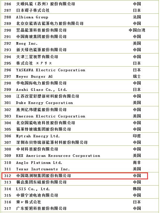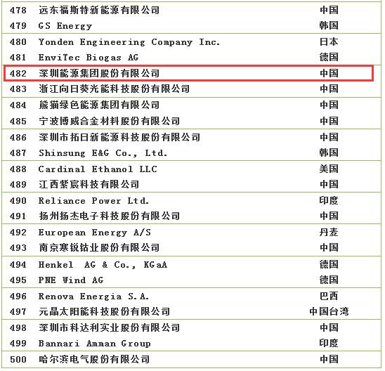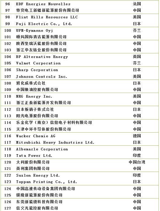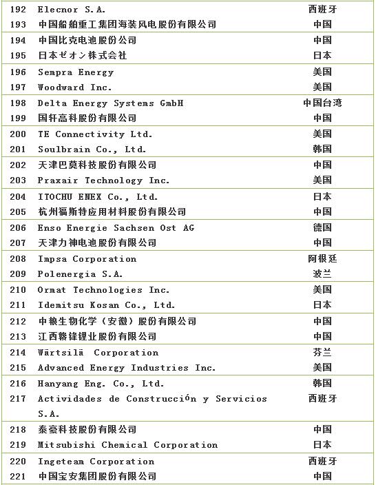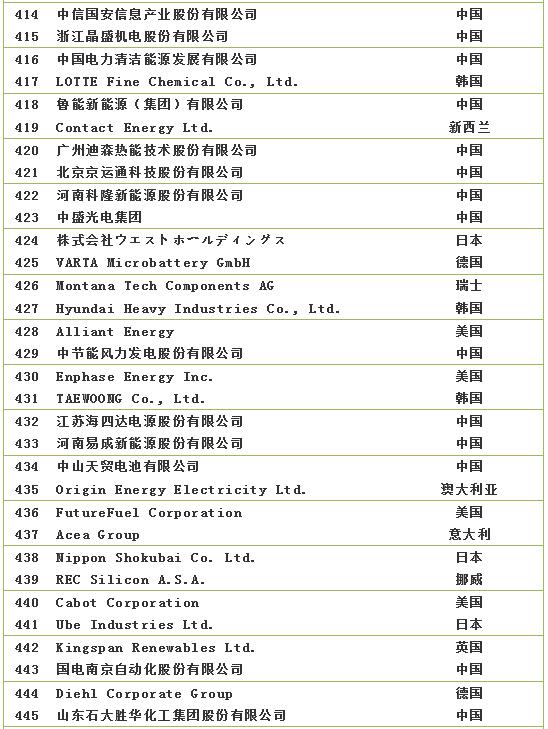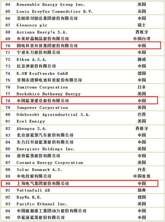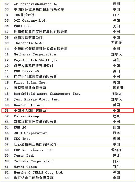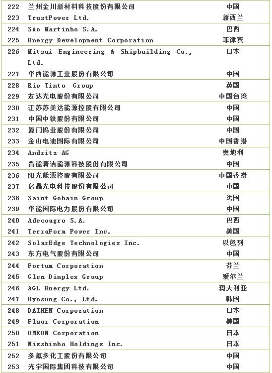 2018全球新能源企業(yè)500強(qiáng)榜單