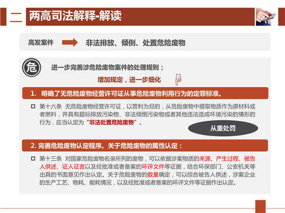 2018年石家莊市固體廢物管理培訓會議課件日前公布,其中,“環(huán)境污染案件中固體廢物屬性的鑒別 省內外典型案例”共32張PPT,課件多角度詳細闡述了環(huán)境污染案件中固體廢物屬性的鑒別,并附多個省內外危險廢物違法犯罪典型案例解讀。詳情如下: