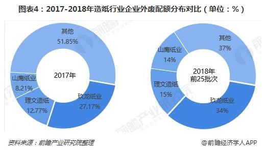而從外廢配額的企業(yè)分布來看,有向龍頭企業(yè)集中的趨勢。2018年前25批次外廢配額中玖龍紙業(yè)、理文造紙、山鷹紙業(yè)三家廢紙系龍頭獲得配額占比達63%,較2017年的48%有明顯提升。長期來看,外廢進口清零大勢所趨,各企業(yè)也通過尋求替代原料的方式來解決這一問題。而龍頭企業(yè)依靠資金優(yōu)勢和前瞻性的布局,在原料端布局深厚,并且通過海外產能建設來獲得原料供應,具備比較優(yōu)勢。