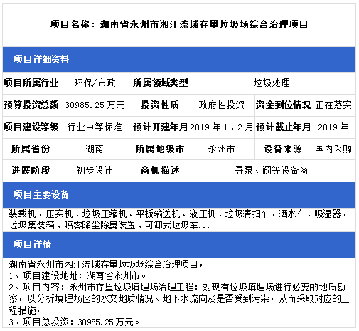 中項(xiàng)網(wǎng)獨(dú)家授權(quán)北極星固廢網(wǎng)發(fā)布最新垃圾處理項(xiàng)目(2018年12月18日更新),其中包括生活垃圾無害化處理設(shè)置建設(shè)項(xiàng)目、農(nóng)村生活垃圾治理項(xiàng)目、生活垃圾衛(wèi)生填埋場項(xiàng)目等。具體內(nèi)容如下: