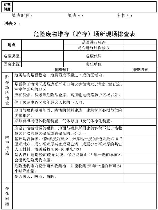 3.危險(xiǎn)廢物堆存(貯存)場所現(xiàn)場排查表