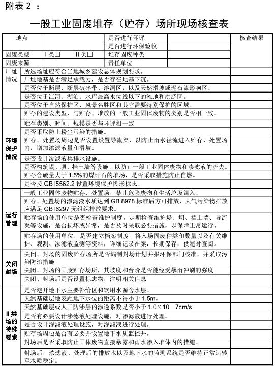 2.一般工業(yè)固廢堆存(貯存)場所現(xiàn)場核查表