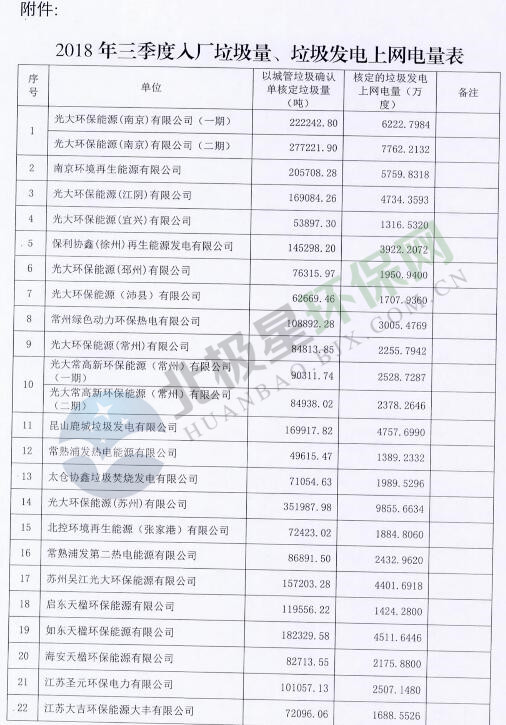 日前,江蘇發(fā)改委發(fā)布關(guān)于確定垃圾焚燒發(fā)電企業(yè)2018年第三季度垃圾處理量和上網(wǎng)電量的通知,詳情如下: