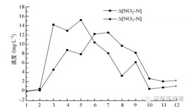 圖 3 UASB反應(yīng)器出水NO2--N、NO3--N增加隨HRT變化情況