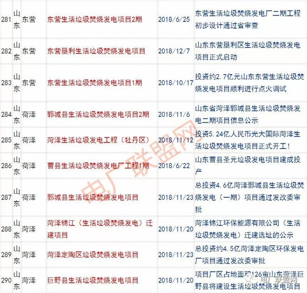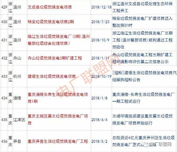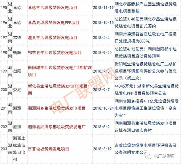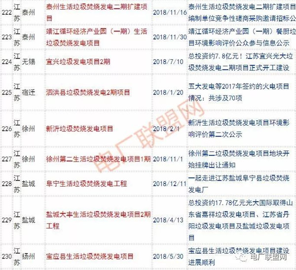2018年新投入運行的生活垃圾焚燒廠超過70座,在建項目166座,擬建項目201座.具體項目名單如下: