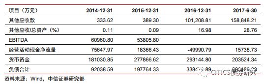 (3)內(nèi)部管理長期混亂,資金占用壓力大。2016年度中期報告前核查相關(guān)擔保、2016年度報告前更換審計師、2017年度中期報告編制等原因?qū)е律鲜鰣蟾婢窗磿r披露;2017年度報告延遲披露,且公司股票一直處于停牌狀態(tài)。2018年3月,因涉嫌信披和債券募資使用違法違規(guī),遭中國證監(jiān)會調(diào)查。公司于2018年7月6日披露公司及其附屬公司近12個月內(nèi)未披露的新發(fā)案件及未結(jié)案件累計涉及金額約人民幣4.34億元(不含部分利息及違約金)。其他應(yīng)收款占總資產(chǎn)的比例逐年攀升,2017年上半年高達29%,主要是對相關(guān)貿(mào)易公司進行的往來,資金被關(guān)聯(lián)方占用比例高。