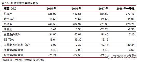 凱迪生態(tài)環(huán)境科技股份有限公司是一家上市公司。2014年陽光凱迪旗下生物資產(chǎn)整體注入凱迪生態(tài),公司成為一家生物質(zhì)發(fā)電、風電業(yè)務(wù)為主的清潔能源企業(yè)。2018年5月7號,凱迪生態(tài)發(fā)布公告未能按約定籌措足額償付資金,構(gòu)成實質(zhì)性違約。公司宣稱加快資產(chǎn)重組來償還債務(wù),但隨后仍有債券違約。
