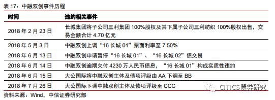 中融雙創(chuàng)由自然人牛相坤、潘長清于2012年11月共同出資成立,設(shè)立時公司名稱為鄒平長城實業(yè)有限公司。主要從事鋁精深加工、能源物流、現(xiàn)代農(nóng)業(yè)以及紡織品生產(chǎn)與銷售業(yè)務(wù),鋁精深加工業(yè)務(wù)是其主要的收入和利潤來源。2018年6月14日,公司發(fā)布公告稱 “16長城01”應(yīng)于6月13日付息及兌付回售部分本金,截至當日尚未能按照約定將本期利息4230萬元劃至托管機構(gòu),構(gòu)成實質(zhì)性違約。