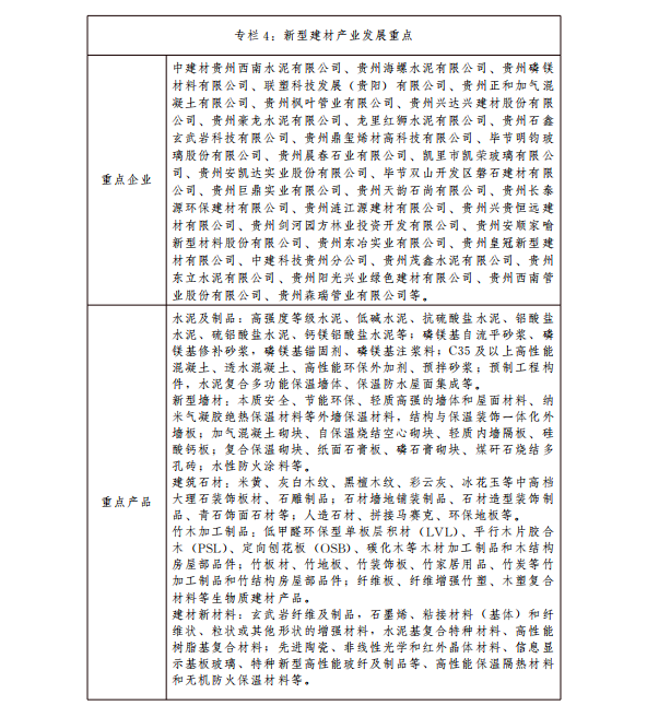 4.鼓勵(lì)發(fā)展建材新興產(chǎn)業(yè)。強(qiáng)化研發(fā)創(chuàng)新和招商引資力度,重點(diǎn)開(kāi)發(fā)和引進(jìn)以服務(wù)于國(guó)家重要領(lǐng)域的粘接材料(基體)、水泥基復(fù)合特種材料、高性能樹(shù)脂基復(fù)合材料等為代表的新型高性能復(fù)合材料;以晶體材料、信息顯示基板玻璃等特種新型玻璃、特種新型高性能玻纖及制品、玄武巖纖維產(chǎn)品等為代表的先進(jìn)無(wú)機(jī)非金屬材料;以硅材料、高性能陶瓷基板、石墨負(fù)極、高性能摩擦、密封、保溫、防火材料為代表的非金屬礦物及制品等。