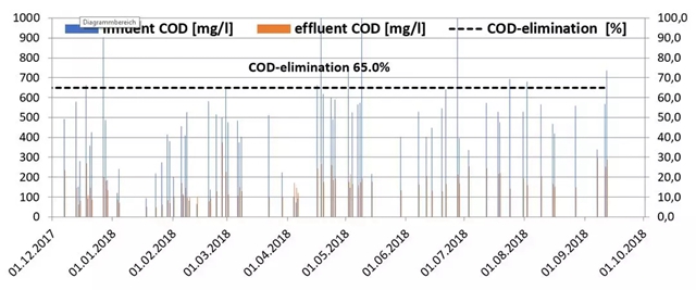 位于德國(guó)的一個(gè)AAA沉淀池的COD和N的去除情況