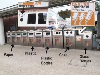 根據日本的垃圾分類法律,除了分為可燃和不可燃垃圾外,資源性垃圾還細分為塑料、紙張、舊報紙雜志、舊衣服、塑料飲料瓶、聽裝飲料瓶等等。另外,換電視、冰箱等家電還必須和收購商之類的專人聯(lián)系,并支付一定費用。大件的垃圾每年只能最多扔4件,否則需要另外付錢。