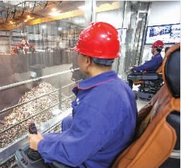 驅車沿黑麋峰蜿蜒的山路行駛,一路逶迤起伏,蒼翠欲滴。幾經曲折面前豁然開朗,腳下,青草、野花、樹木,彌漫著暗香浮動的清新空氣;不遠處,冷卻塔、煙囪、垃圾儲坑、焚燒發(fā)電廠房等涂裝不同顏色的建筑鱗次櫛比。無法想象,這竟是垃圾焚燒發(fā)電廠!沿著一號廠房的參觀通道,每走一段就有不同顏色的燈帶,預示著進入了不同的處理車間。透過清潔焚燒中心垃圾吊控制室的玻璃幕墻,一個巨大的抓斗從垃圾池內緩慢地將垃圾抓起,把它們從燃燒到千度高溫的焚燒爐頂端投進去,焚燒爐內的高溫迅速將垃圾烤干焚燒?!坝辛死贌l(fā)電,長沙的生活垃圾最終會告別填埋!”浦湘公司副總經理段佳指著正在大口大口“吞食”垃圾的現代化焚燒設備,臉上洋溢著自豪的微笑。