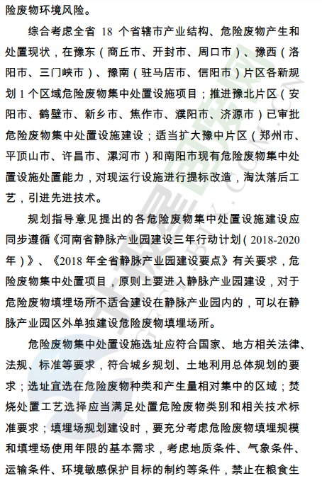 河南省環(huán)境保護(hù)廳辦公室發(fā)布了關(guān)于印發(fā)河南省危險(xiǎn)廢物集中處置設(shè)施建設(shè)布局規(guī)劃指導(dǎo)意見的通知,并發(fā)布了《河南省危險(xiǎn)廢物集中處置設(shè)施建設(shè)布局規(guī)劃指導(dǎo)意見》全文如下: