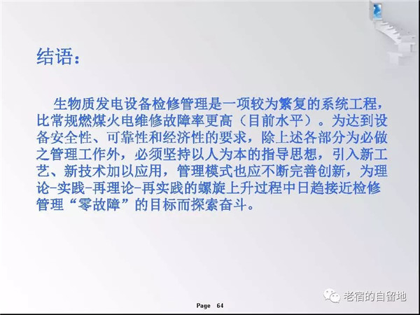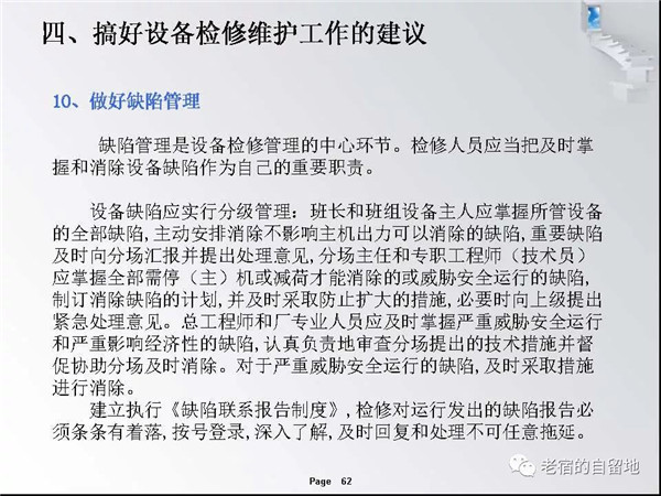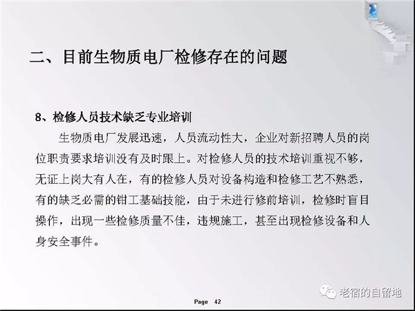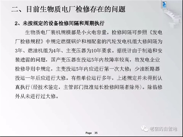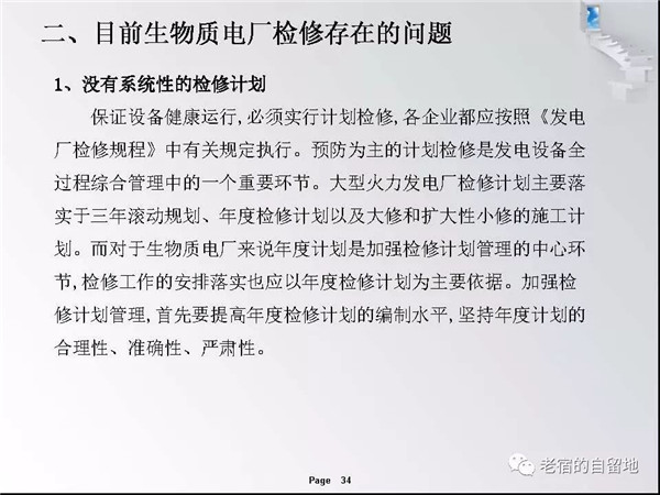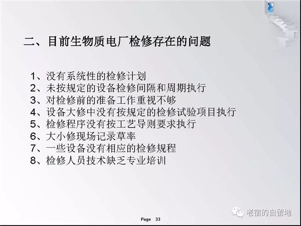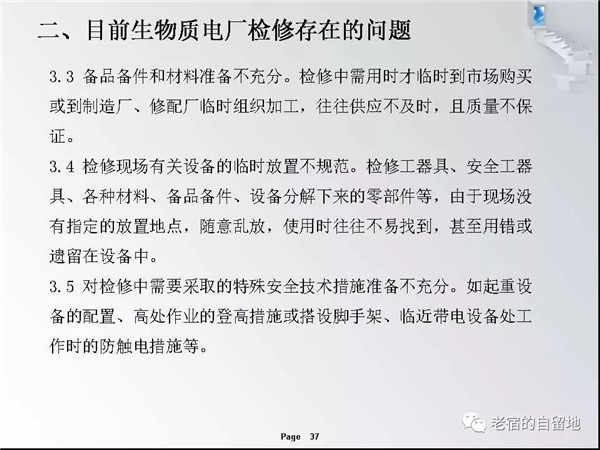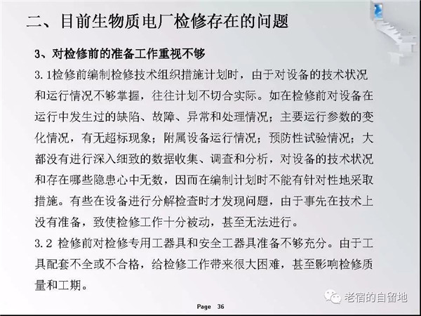 隨著國家對生物質(zhì)能開發(fā)總是和支持,近幾年生物質(zhì)發(fā)電得以迅猛發(fā)展。在企業(yè)運營過程中,比較突出的問題是有的企業(yè)對設備檢修維護工作重視不夠,導致設備故障率高、運行周期短、效率低,個別單位的設備甚至到了不破不修,不壞不修的狀態(tài)、嚴重影響了安全經(jīng)濟運行,對企業(yè)生存發(fā)展造成了重大影響。下面就生物質(zhì)發(fā)電企業(yè)檢修管理和重點關注方面進行交流。