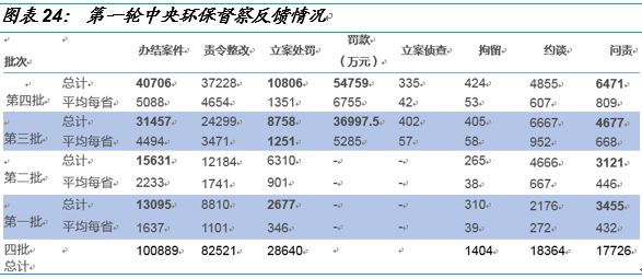 民眾參與程度提高、處罰企業(yè)力度加大、問責(zé)官員數(shù)量增多。3月29日,在生態(tài)環(huán)境部3月份例行新聞發(fā)布會上,生態(tài)環(huán)境部新聞發(fā)言人劉友賓表示第一輪中央環(huán)保督察共問責(zé)黨政領(lǐng)導(dǎo)干部1.8萬余人,受理群眾環(huán)境舉報13.5萬件,直接推動解決群眾身邊的環(huán)境問題8萬多個。隨著中央環(huán)保督察的追批次展開,民眾參與程度更高、處罰企業(yè)力度更大、問責(zé)官員數(shù)量更多。第四批督察辦結(jié)群眾舉報案件40706件,遠(yuǎn)高于前三批的13095件、15631件和31457件,群眾的參與度高體現(xiàn)了對中央環(huán)保督察的認(rèn)可和擁護(hù)。問責(zé)官員數(shù)量更多,主要體現(xiàn)在約談人數(shù)和問責(zé)人數(shù)。特別是第四批督察的問責(zé)人數(shù)的總數(shù)和每省平均人數(shù)為6471人和809人,均創(chuàng)四批督察的新高。