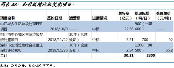 接連中大單,項(xiàng)目拓展速度加速:10月以來,公司接連中標(biāo)大單。城市環(huán)境業(yè)務(wù)板塊接連中標(biāo)內(nèi)江城鄉(xiāng)生活垃圾處理PPP項(xiàng)目、荊門市中心城區(qū)生活垃圾焚燒處置項(xiàng)目和灤州市生活垃圾綜合處置工程。公司新增垃圾焚燒產(chǎn)能2800噸/日,總產(chǎn)能達(dá)到9400噸/日,產(chǎn)能規(guī)模提升了42%。泗洪縣垃圾焚燒發(fā)電項(xiàng)目(一期)已經(jīng)試運(yùn)營,成為公司第一個運(yùn)營的生活垃圾焚燒發(fā)電項(xiàng)目。環(huán)境修復(fù)業(yè)務(wù)板塊新增3個項(xiàng)目:蘇州溶劑廠原址南區(qū)項(xiàng)目、杭州市望江地區(qū)紅星化工廠土壤修復(fù)項(xiàng)目和常豐農(nóng)化原廠址場地修復(fù)項(xiàng)目,合同金額約5.68億元。工業(yè)環(huán)境板塊新增西藏玉龍銅礦改擴(kuò)建工程諾瑪弄溝尾礦庫工程,合同金額為10.53億,公司負(fù)責(zé)其中防滲工程部分(金額約占25%)。