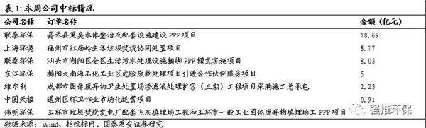 根據(jù)公告與招投標(biāo)信息統(tǒng)計(jì),本周環(huán)保公司中新增訂單7單、中標(biāo)總金額43.03億;新增訂單前三名分別為高能環(huán)境、國禎環(huán)保和維爾利。