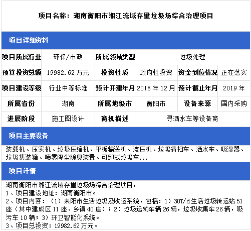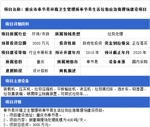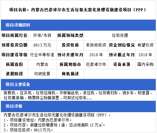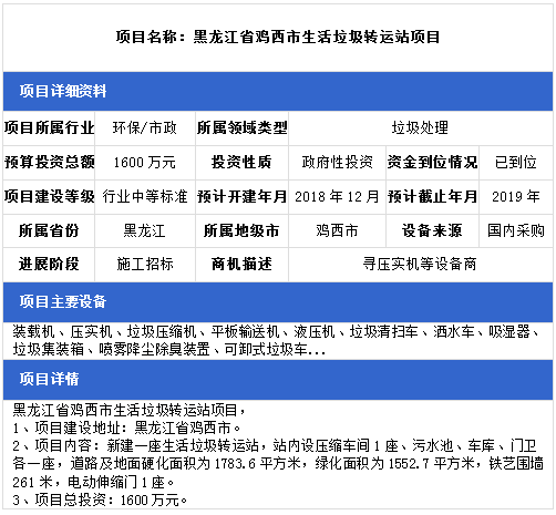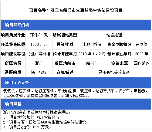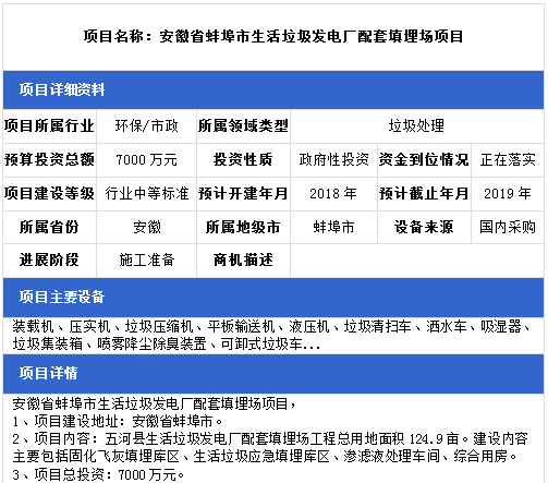 中項(xiàng)網(wǎng)獨(dú)家授權(quán)北極星固廢網(wǎng)發(fā)布最新垃圾處理項(xiàng)目(2019年1月2日更新),其中包括垃圾填埋場(chǎng)項(xiàng)目、垃圾發(fā)電廠配套垃圾填埋場(chǎng)項(xiàng)目、生活垃圾中轉(zhuǎn)站項(xiàng)目等。具體內(nèi)容如下: