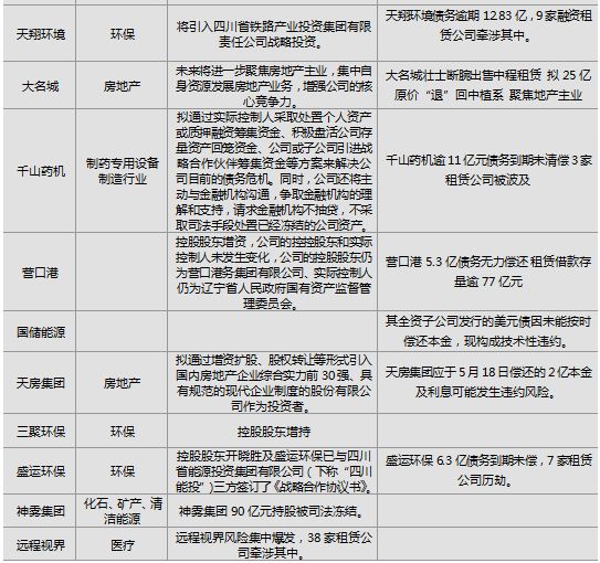 從違約企業(yè)的后續(xù)進(jìn)展來看,環(huán)保企業(yè)因與國家政策及發(fā)展前景關(guān)聯(lián)度較高目前多有國資入場(chǎng);能源、制造業(yè)以及有國企背景的多已與政府連線;亦有部分企業(yè)正在摸索轉(zhuǎn)型,但成效緩慢。對(duì)租賃公司來說,追回債務(wù)也并非朝夕。