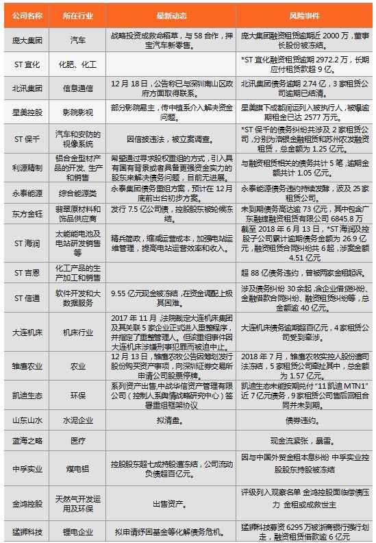 表:債市違約潮下租賃公司風(fēng)險(xiǎn)情況統(tǒng)計(jì)