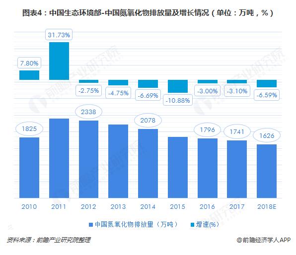 氮氧化物排放量也得到了有效控制。2011年以來,氮氧化物的排放量逐年下滑,2017年,氮氧化物的排放量為1741萬噸,同比上一年度下降3.10%。2017年的排放量或進一步降至1626萬噸。