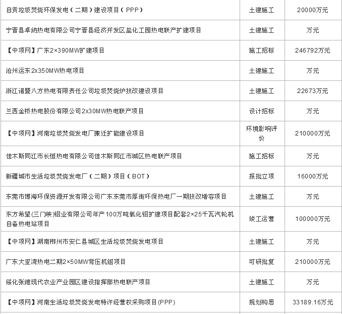 1月份垃圾發(fā)電項目