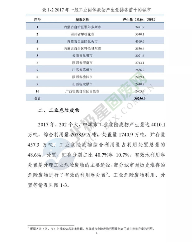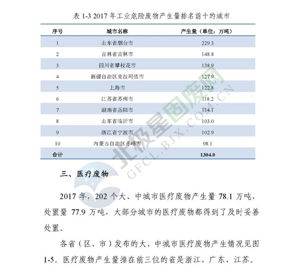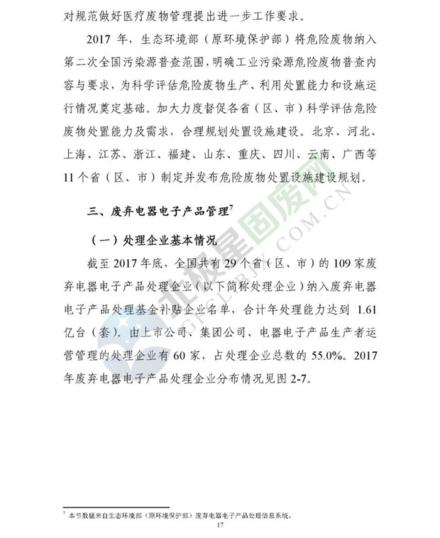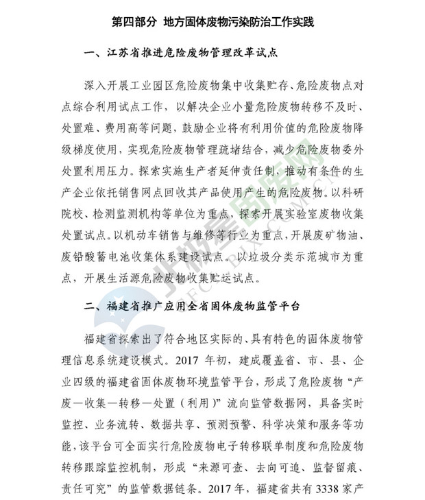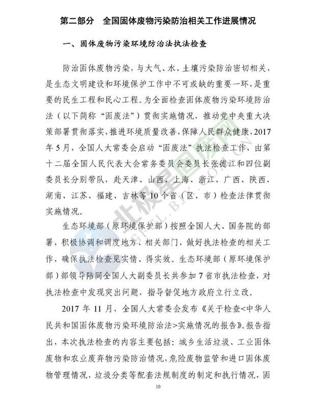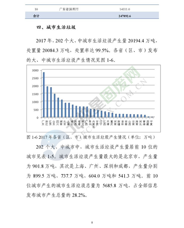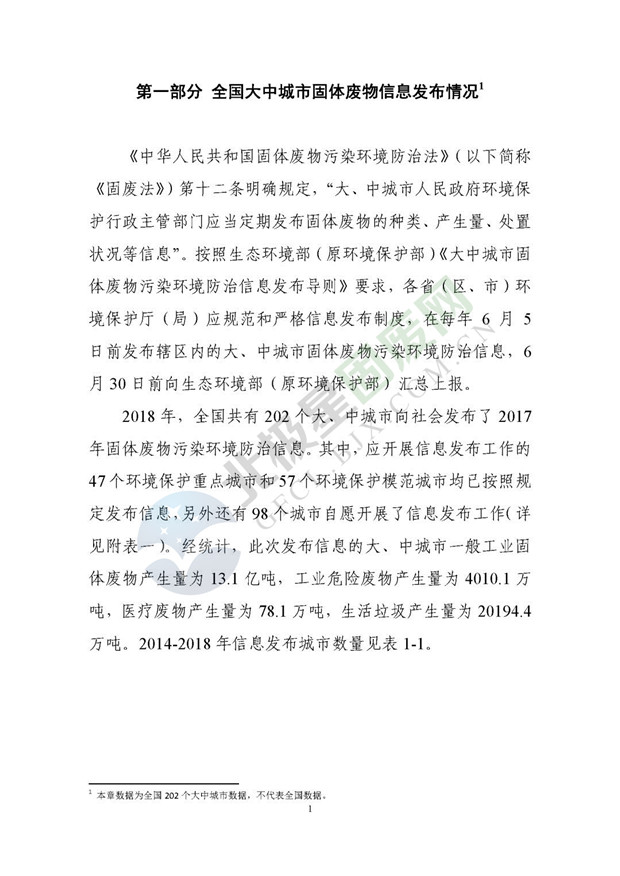 日前生態(tài)環(huán)境部發(fā)布了《2018年全國大、中城市固體廢物污染環(huán)境防治年報》,2014 年以來,為促進(jìn)環(huán)境信息公開、增進(jìn)社會公眾參與, 生態(tài)環(huán)境部(原環(huán)境保護(hù)部)每年定期以年報形式發(fā)布固體廢物污染環(huán)境防治信息。近日,生態(tài)環(huán)境部發(fā)布《2018年全國大、中城市固體廢物污染環(huán)境防治年報》,從大中城市信息發(fā)布、重點工作進(jìn)展、能力建設(shè)以及地方工作實踐等方面,系統(tǒng)介紹了2017年我國固體廢物污染環(huán)境防治工作的相關(guān)情況。