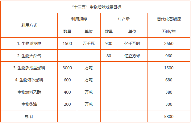 到2020年,生物質(zhì)能基本實(shí)現(xiàn)商業(yè)化和規(guī)?;?。生物質(zhì)能年利用量約5800萬(wàn)噸標(biāo)準(zhǔn)煤。生物質(zhì)發(fā)電總裝機(jī)容量達(dá)到1500萬(wàn)千瓦,年發(fā)電量900億千瓦時(shí),其中農(nóng)林生物質(zhì)直燃發(fā)電700萬(wàn)千瓦,城鎮(zhèn)生活垃圾焚燒發(fā)電750萬(wàn)千瓦,沼氣發(fā)電50萬(wàn)千瓦;生物天然氣年利用量80億立方米;生物液體燃料年利用量600萬(wàn)噸;生物質(zhì)成型燃料年利用量3000萬(wàn)噸。