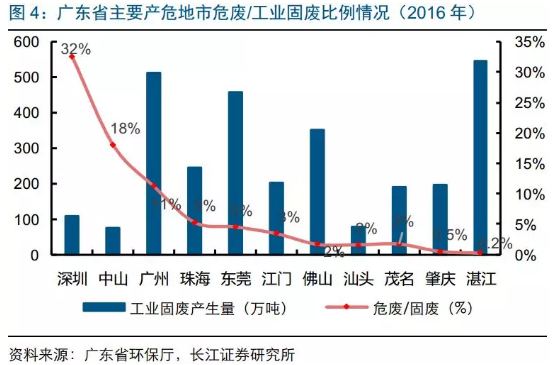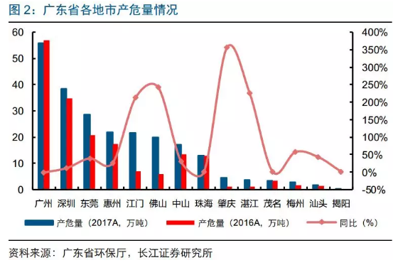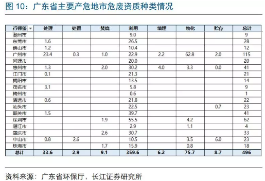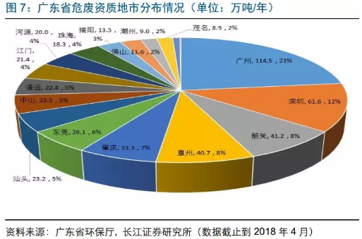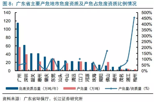 目前廣東危廢資質(zhì)達(dá)496萬噸,廣州、深圳占36%