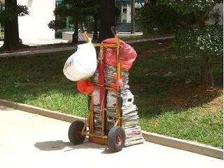 新加坡舊貨收集商推著手推車(chē)挨家挨戶(hù)收集有價(jià)值的家用廢棄物