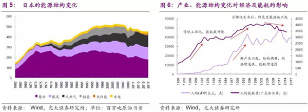 能源結(jié)構(gòu)對(duì)大氣污染關(guān)鍵性指標(biāo)和綠色發(fā)展方向的判斷很關(guān)鍵,日本在工業(yè)化階段能源需求快速增加,也曾經(jīng)面臨酸雨、霧霾等問題,并與之進(jìn)行了長期斗爭,隨著治污設(shè)備的增加以及產(chǎn)業(yè)的轉(zhuǎn)型,日本的大氣環(huán)境有了很大的改善。當(dāng)前,大氣治理的重心也逐步從煙氣治理轉(zhuǎn)到汽車尾氣治理以及發(fā)展新能源汽車方面。