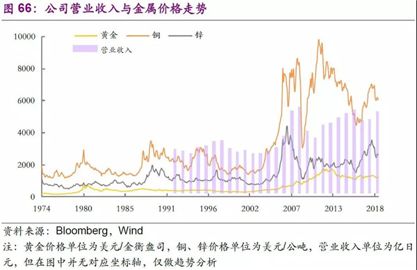 公司的營業(yè)收入與金屬價(jià)格走勢有著較強(qiáng)的聯(lián)系,主要因?yàn)楣镜囊睙?、環(huán)保與循環(huán)再生、以及金屬加工業(yè)務(wù)均受到銅、鋅等金屬材料價(jià)格的直接影響:公司的冶煉業(yè)務(wù)以及環(huán)保中的循環(huán)利用業(yè)務(wù)中,銅、鋅等金屬材料的價(jià)格上漲直接利好公司營業(yè)收入的增長;而公司的金屬加工業(yè)務(wù)中,銅、鋅作為其原材料,在一定程度上亦會(huì)影響公司成本。由于公司冶煉、環(huán)保與循環(huán)再生業(yè)務(wù)的營業(yè)收入占比較大,總的來看金屬價(jià)格的走高有利于公司營業(yè)收入的穩(wěn)步增長(如2007、08年銅、鋅價(jià)格走高帶動(dòng)公司營業(yè)收入高增長)。